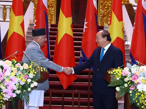 | Le Premier ministre Nguyên Xuân Phuc (droite) et son homologue népalais KP Sharma Oli, le 11 mai à Hanoï. |