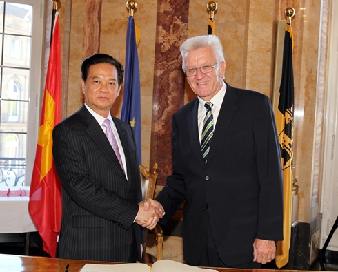 | Le Premier ministre Nguyên Tân Dung (gauche) et le ministre-président du Bade-Wurtemberg, Winfried Kretschmann. Photo : Duc Tam/VNA/CVN |