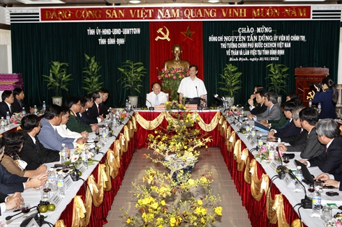 | Le Premier ministre Nguyên Tân Dung (debout) a une séance de travail le 31 janvier avec les autorités de la province de Binh Dinh (Centre). |