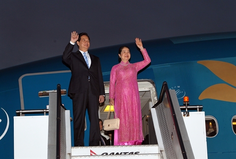 | Arrivée du Premier ministre vietnamien Nguyên Tân Dung et de son épouse, le 16 mars à l'aéroport international de Sydney (Australie) |