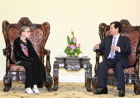 | Le Premier ministre Nguyên Tân Dung et la juge de la Cour suprême des États-Unis, Ruth Bader Ginsburg, le 10 août à Hanoi. |