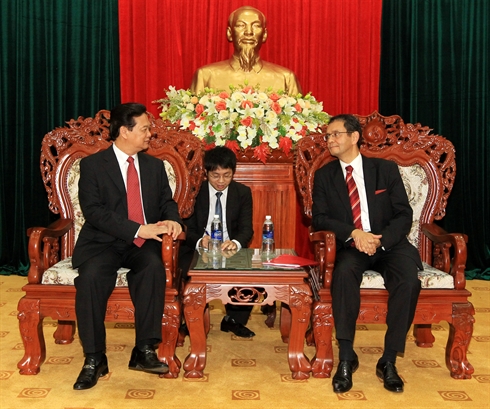 | Le Premier ministre Nguyên Tân Dung (gauche) a reçu Joop Scheffers, ambassadeur des Pays-Bas, le 20 mars à Cân Tho |