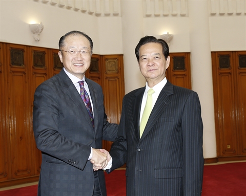 | Le Premier ministre Nguyên Tân Dung (droite) le président de la Banque mondiale Jim Yong Kim, le 23 février à Hanoi. |