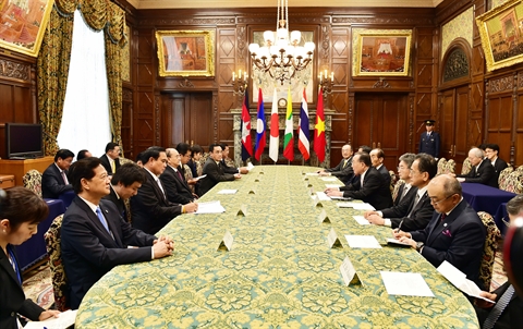 | Les Premiers ministres vietnamien, lao, cambodgien et thaïlandais (gauche) lors de la rencontre avec la délégation de la Chambre des conseillers du Japon. |