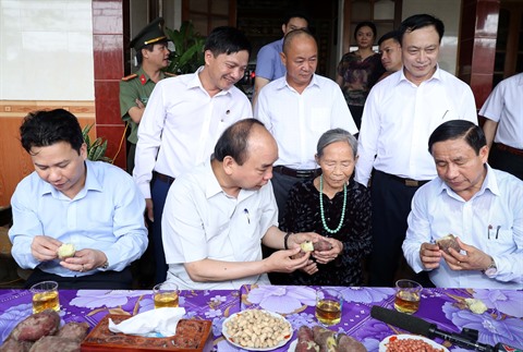 | Le Premier ministre Nguyên Xuân Phuc (4e à gauche) avec les responsables du district de Duc Tho. |