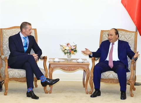 | Spencer Damian White (gauche), directeur exécutif de Delta Offshore Energy Pte Ltd, reçu par le Premier ministre Nguyên Xuân Phuc, le 3 octobre à Hanoï. |