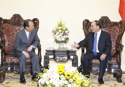 Shin Jong Kyun a informé Nguyên Xuân Phuc des résultats d'investissement du groupe au Vietnam, avec notamment un bon rythme de décaissement du capital de ses projets dans les provinces septentrionales de Bac Ninh et Thai Nguyên. Samsung s'est engagé à observer sérieusement la loi du Vietnam sur l'investissement, la sécurité sociale des travailleurs, etc, a-t-il affirmé.