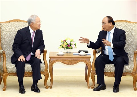 | Le Premier ministre Nguyên Xuân Phuc (droite) et le président du groupe sud-coréen Sohn Kyung-shik, le 6 décembre à Hanoï. |