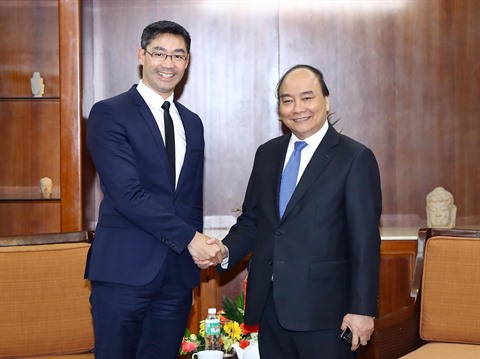 | Le Premier ministre Nguyên Xuân Phuc (droite) et l’ancien vice-chancelier allemand Philipp Rösler. |