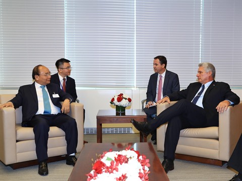 | Le Premier ministre Nguyên Xuân Phuc (gauche) et le président du Conseil d’État et ministre cubain, Miguel Diaz-Canel. |