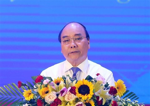 | Le PM Nguyên Xuân Phuc prend la parole lors de la célébration des 70 ans de la Journée traditionnelle des jeunes volontaires vietnamiens, le 14 juillet à Hanoï. |