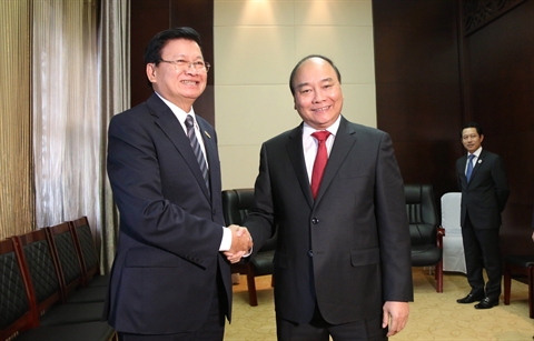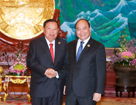 | Le Premier ministre Nguyên Xuân Phuc (droite) et le secrétaire général du Parti populaire révolutionnaire et président du Laos, Bounnhang Vorachith, le 6 septembre à Vientiane, au Laos. |