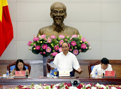 | Le Premier ministre Nguyên Xuân Phuc (debout) s'exprime lors de la rencontre avec la Croix-Rouge vietnamienne, le 19 juillet à Hanoï. |