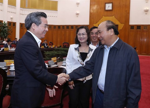 | Le Premier ministre Nguyên Xuân Phuc (droite) a travaillé le 26 février à Hanoï avec les hauts dirigeants de la province de Bac Liêu (Sud). |