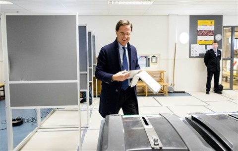 | Le Premier ministre néerlandais Mark Rutte vote lors d'élections provinciales, le 20 mars à La Haye. |