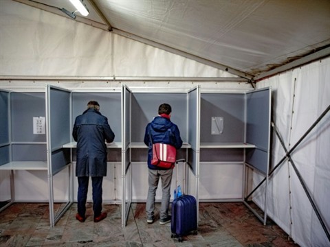 | Dans un bureau de vote à Rotterdam, le 20 mars. |