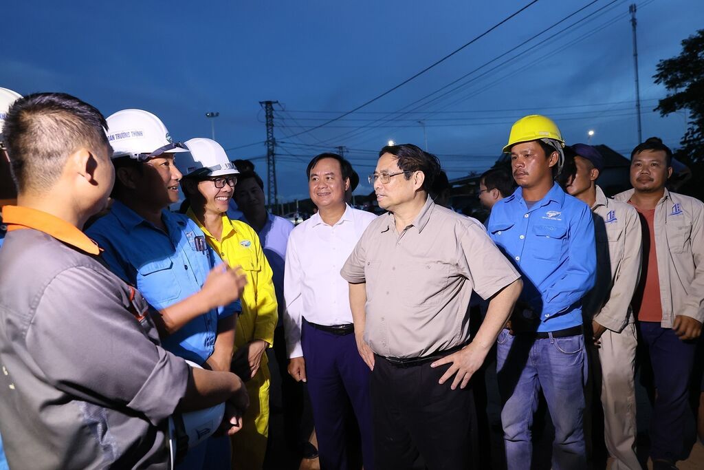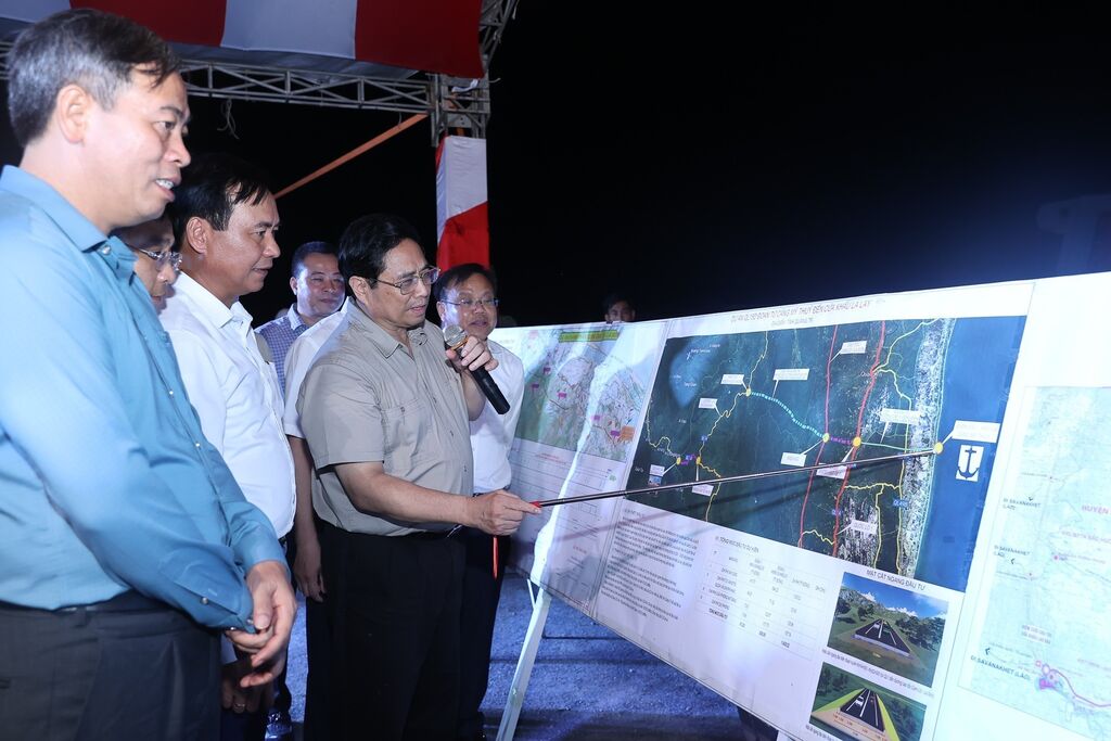 | Le Premier ministre Pham Minh Chinh inspecte un projet de transport. |