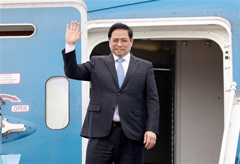 | Le Premier ministre Pham Minh Chinh à l'aéroport international de Nôi Bài, à Hanoï. |