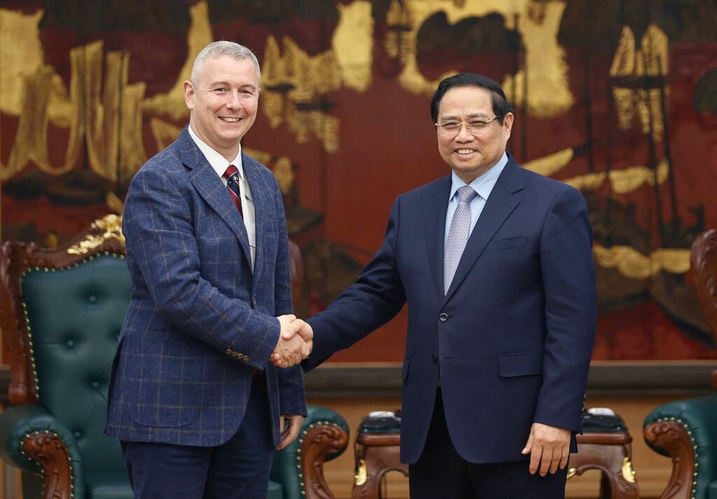 | Le Premier ministre Pham Minh Chinh (droite) et l’ambassadeur de Belgique au Vietnam, Karl Van Den Bossche, le 26 février à Hanoï. |