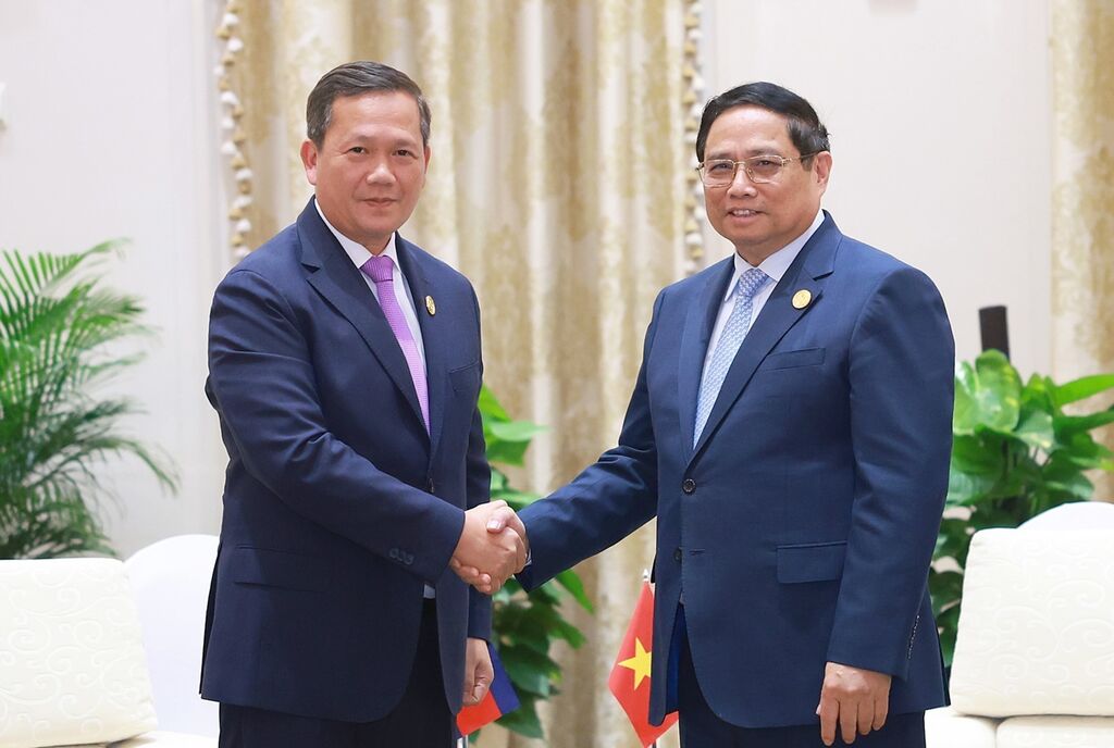 | Le Premier ministre Pham Minh Chinh (droite) et son homologue cambodgien, Samdech Hun Manet. |