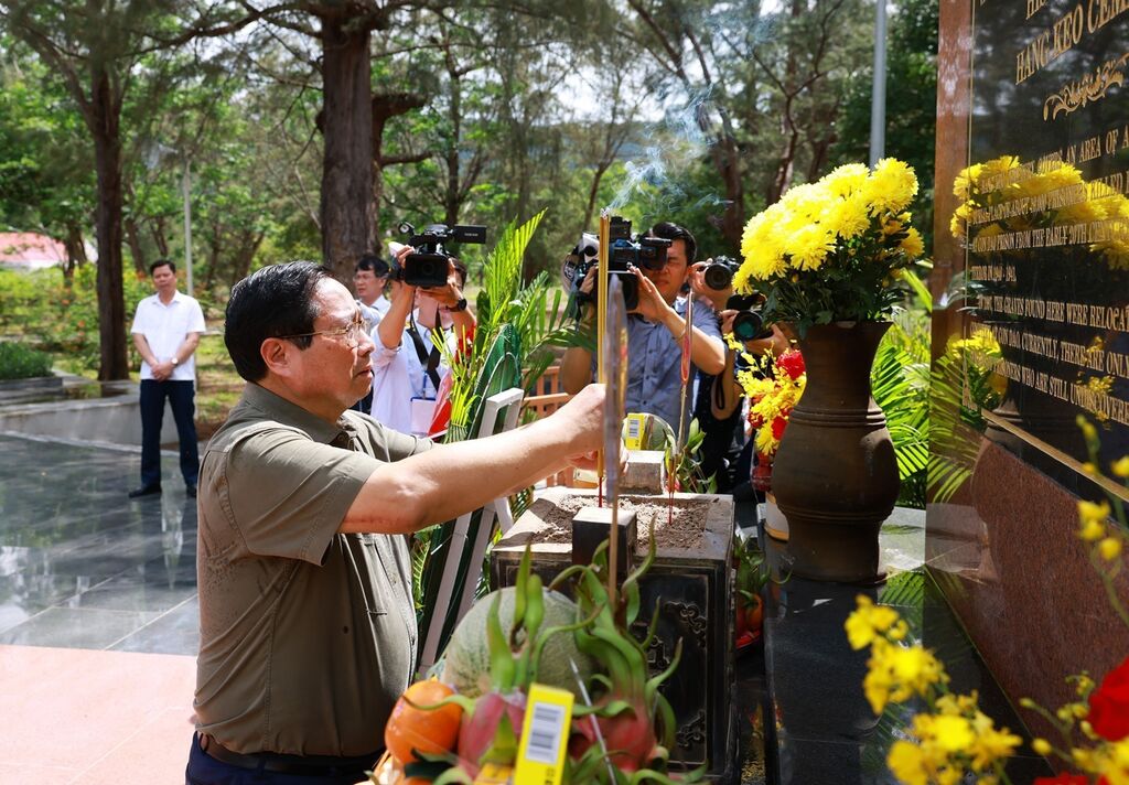 Au temple de Côn Dao, situé juste à côté du cimetière de Hàng Duong, Pham Minh Chinh et la délégation qui l'accompagnait ont offert des fleurs et de l'encens pour commémorer et rendre hommage au Président Hô Chi Minh, à ses prédécesseurs et aux martyrs héroïques, soldats et habitants qui se sont sacrifiés pour l'indépendance et la liberté de la nation, en particulier les 20.000 soldats et habitants qui ont perdu la vie dans le système pénitentiaire de Côn Dao pendant 113 ans.