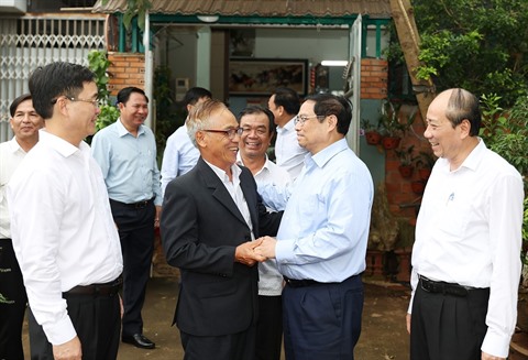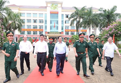 | Le Premier ministre Pham Minh Chinh (centre) rend visite le 1er juillet au Commandement militaire de Dak Lak. |