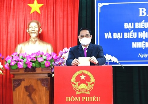 | Le Premier ministre Pham Minh Chinh dépose son bulletin de vote dans l'urne, le 23 mai à Cân Tho. |