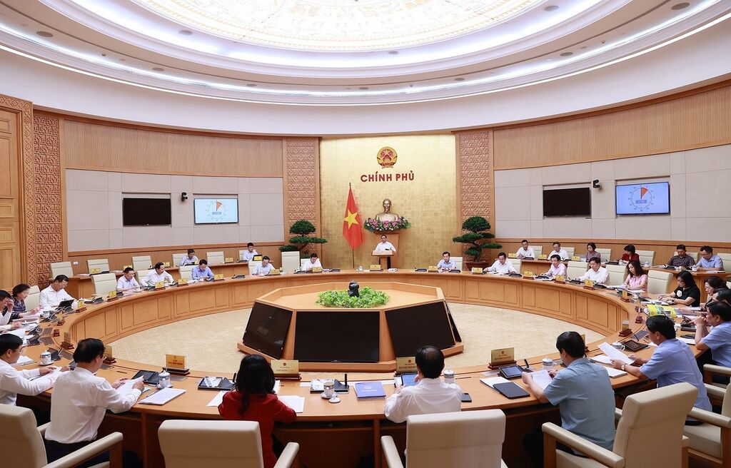 | Le Premier ministre Pham Minh Chinh à la réunion thématique de juin du gouvernement. Photo : Duong Giang/VNA/CVN |
