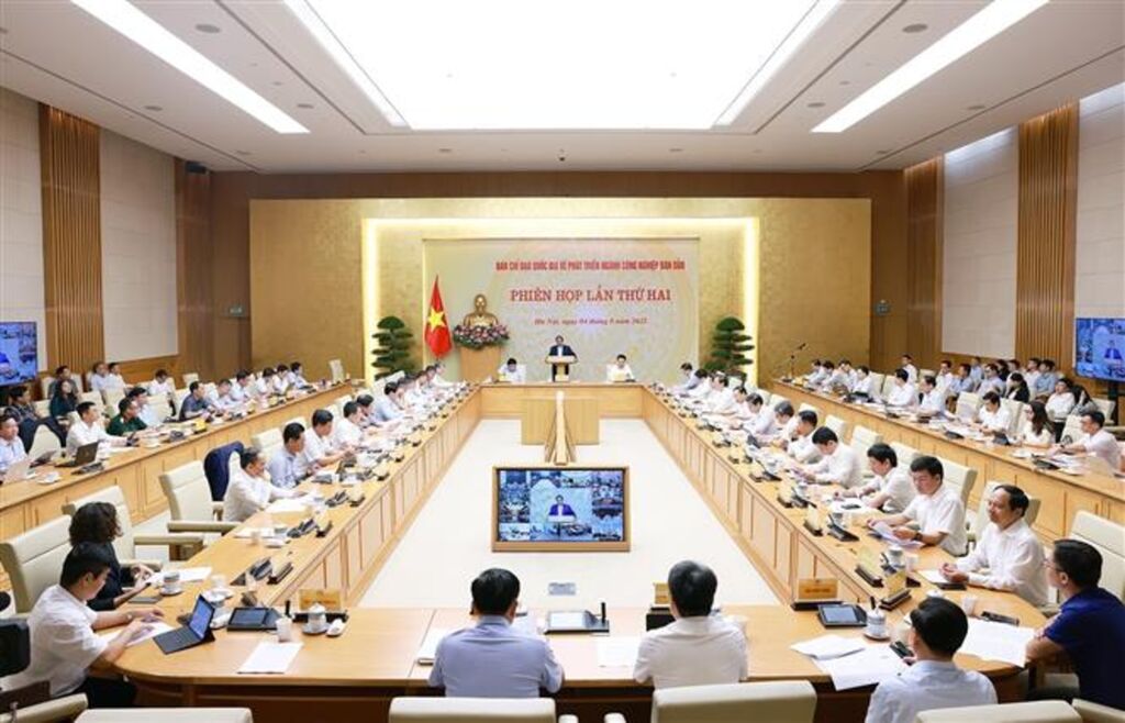 | Le Premier ministre Pham Minh Chinh s'exprime lors de la deuxième réunion du Comité directeur national sur le développement de l'industrie des semi-conducteurs. |