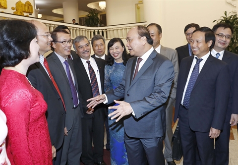 | Le Premier ministre Nguyên Xuân Phuc (2e à droite) rencontre de nouveaux ambassadeurs et représentants vietnamiens, le 14 juillet à Hanoï. |