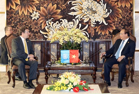 Le PM Nguyên Xuân Phuc et l'Administrateur du Programme des Nations unies pour le développement (PNUD) Achim Steiner ont discuté des efforts de l'ONU dans la réforme du système des Nations unies pour le développement, afin de soutenir davantage les pays dans la réalisation du Programme 2030. Le Vietnam soutient la valorisation des résultats et des expériences dans l'application de l'initiative "Unis dans l'action" (DaO en anglais) pour la réforme du système de l'ONU, le renforcement du rôle de leader du coordinateur de l'ONU. À l'échelle nationale, le Vietnam est fier d'être l'un des premiers pays dans l'application de l'initiative DaO et d'avoir la "Maison verte" de l'ONU, le premier bâtiment vert de cette organisation dans le monde.