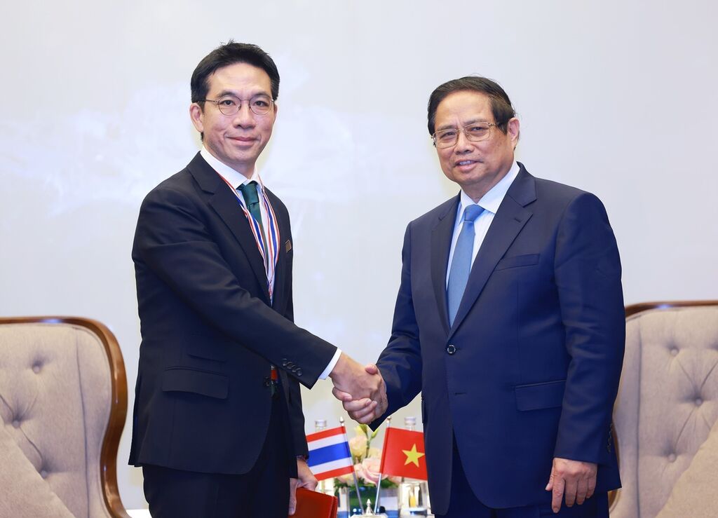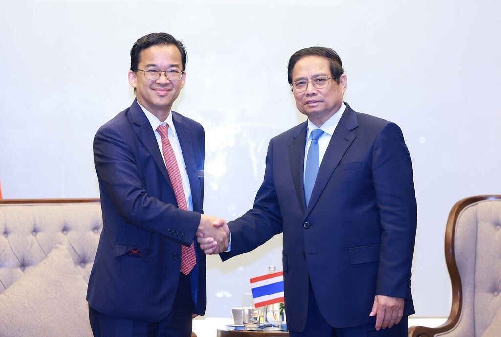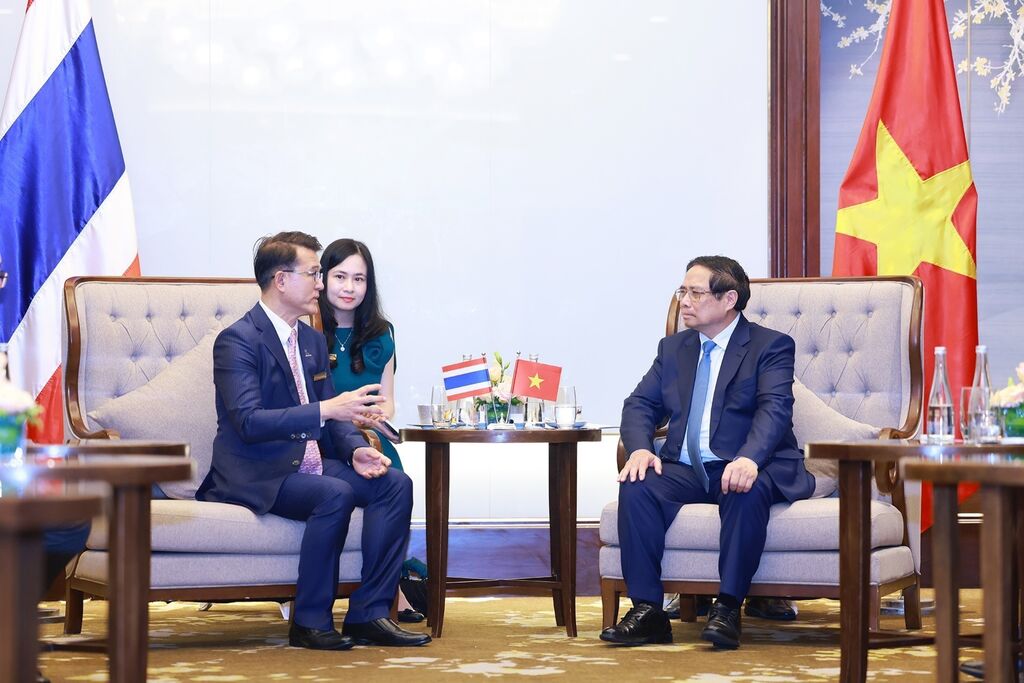 | Le Premier ministre Pham Minh Chinh (droite) et Thammasak Sethaudom, président-directeur général du groupe SCG (Thaïlande). |