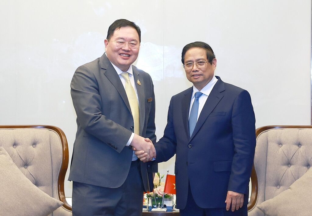 | Le Premier ministre Pham Minh Chinh (droite) et le président du groupe thaïlandais Super Energy, Jormsup Lochaya. |