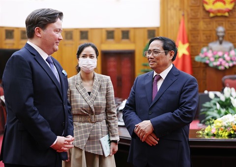 | Le Premier ministre Pham Minh Chinh (droite) a reçu le 30 mars à Hanoï l'ambassadeur des États-Unis au Vietnam, Marc E. Knapper. |