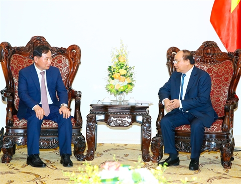 | Le Premier ministre Nguyên Xuân Phuc (droite) et le directeur général de Hyundai Motor Company Commercial Vehiculs, S.K.Han, le 20 avril à Hanoï. |