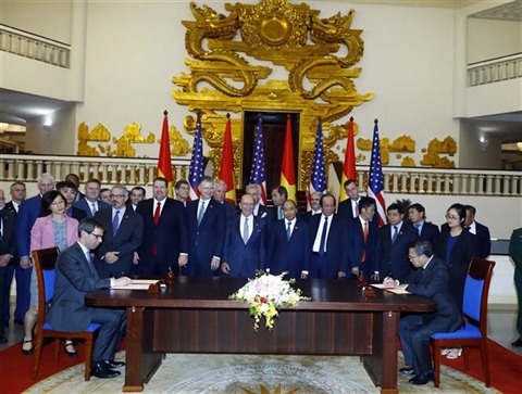 Après la réception, le Premier ministre Nguyên Xuân Phuc, le secrétaire américain au Commerce, Wilbur Ross, et des responsables des deux pays ont assisté à la signature de plusieurs accords commerciaux importants.