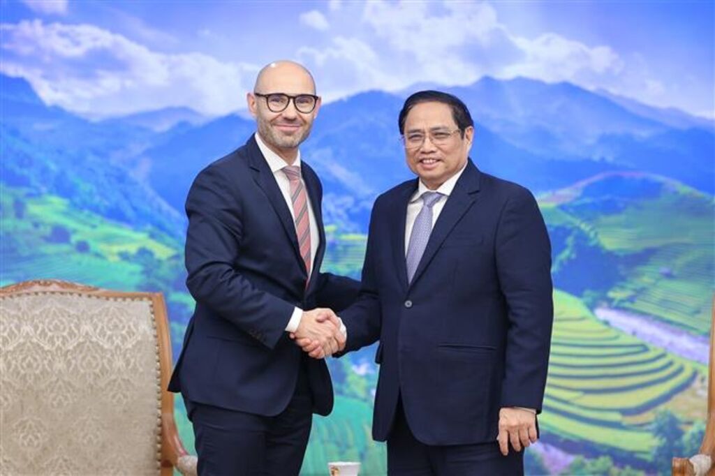 | Le Premier ministre Pham Minh Chinh (droite) et le secrétaire général de la Cour permanente d’arbitrage, Marcin Czepelak, le 21 novembre à Hanoï. |