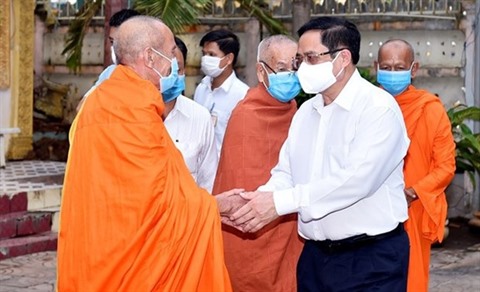 | Le Premier ministre Pham Minh Chinh et les dignitaires religieux. |