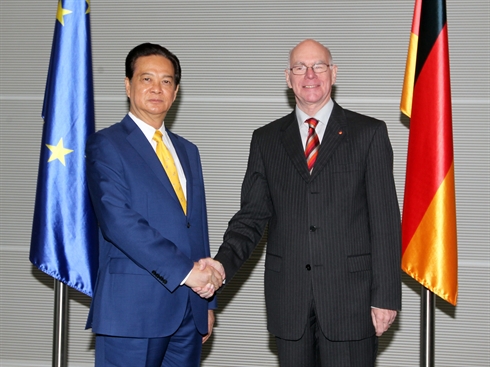 | Le Premier ministre vietnamien Nguyên Tân Dung (droite) et le président du Parlement allemand, Norbert Lammert. |