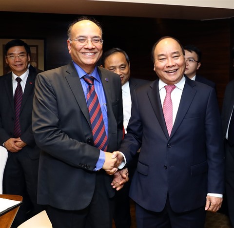 | Le Premier ministre Nguyên Xuân Phuc (droite) et le directeur exécutif du Groupe national du pétrole de l’Inde, Narendrea K. Verma. |