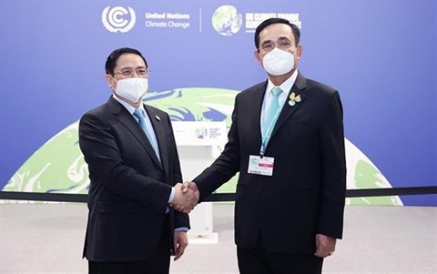 | Le Premier ministre Pham Minh Chinh (gauche) et son homologue thaïlandais Prayut Chan-o-cha, le 1er novembre à |