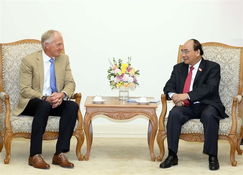 | Greg Norman (gauche), ambassadeur du tourisme du Vietnam, reçu par le Premier ministre Nguyên Xuân Phuc, le 31 octobre à Hanoï. |