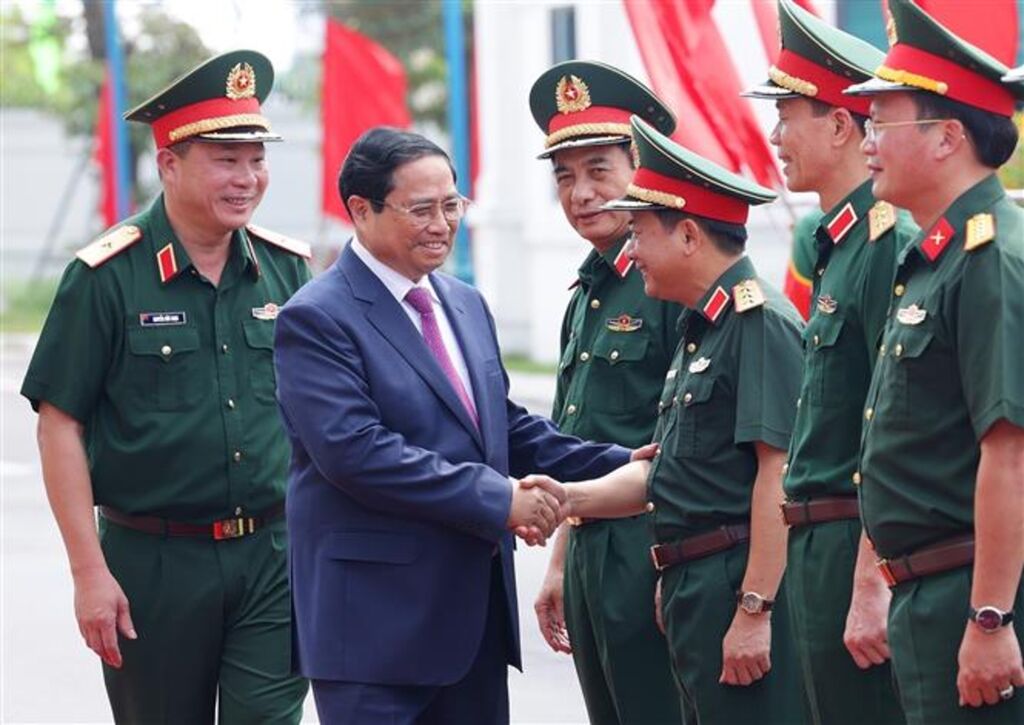 | Le Premier ministre Pham Minh Chinh (gauche) visite le Corps d'armée 12, le 10 mai à Hanoï. |