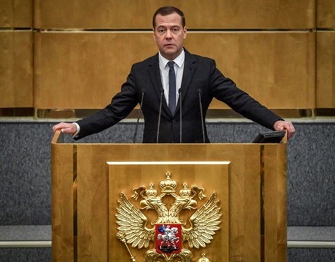| Dmitri Medvedev dans la Chambre basse du Parlement russe à Moscou, le 8 mai. |