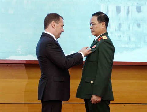 | Le Premier ministre russe Dmitry Medvedev (gauche) a décerné l'Ordre de l'amitié de la Fédération de Russie au directeur général du Centre tropical vietnamo-russe Nguyên Hông Du pour ses contributions aux relations entre les deux pays. |