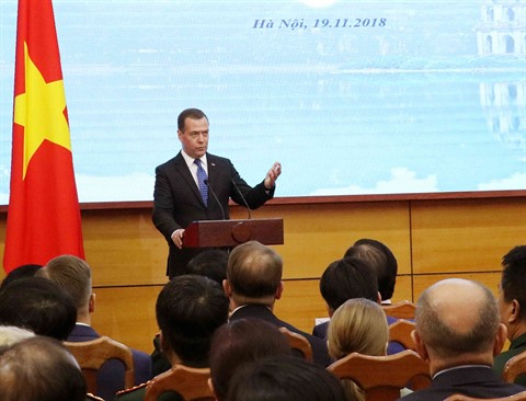 Durant son séjour, le Premier ministre russe a eu un entretien avec le Premier ministre Nguyên Xuân Phuc, a rendu une visite de courtoisie au secrétaire général du Parti communiste du Vietnam et président Nguyên Phu Trong, et a rencontré la présidente de l'Assemblée nationale, Nguyên Thi Kim Ngân. À cette occasion, il a également déposé des gerbes au Mausolée du Président Hô Chi Minh et au monument aux martyrs à Hanoï, et a visité une exposition de photos sur les relations traditionnelles entre le Vietnam et la Russie et sur la coopération intégrale entre les deux pays organisée conjointement par l'Agence Vietnamienne d’Information (VNA) et l’Agence de presse d’État russe TASS. Il a également visité le centre tropical vietnamo-russe et présenté des distinctions honorifique de l’État russe au centre.