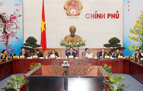 | Le Premier ministre Nguyên Tân Dung (centre) préside la réunion périodique du gouvernement, le 25 janvier à Hanoi. |
