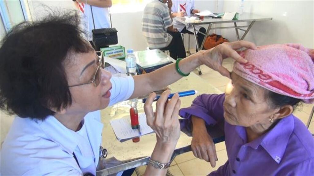 | Consultation oculaire à une femme âgée à Thanh Hoa (Centre). |