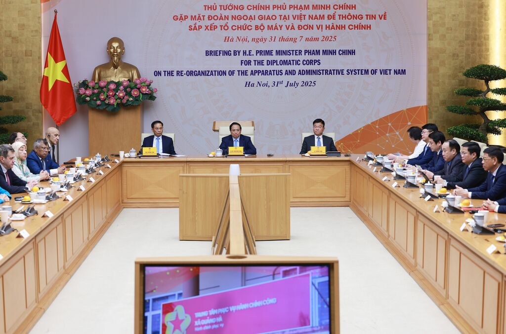 Lors d'une réunion avec le corps diplomatique accrédité au Vietnam pour rendre compte de la réorganisation du système politique, des unités administratives et de la mise en œuvre du modèle d’administration locale à deux niveaux au Vietnam, Pham Minh Chinh a remercié les ambassadeurs, les chargés d'affaires, les représentants des pays et des organisations internationales pour leur sincère affection et leur engagement à soutenir la nation vietnamienne ces derniers temps et à l'avenir.