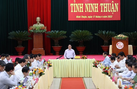 Le chef du gouvernement a demandé à Ninh Thuân de mieux exploiter ses atouts et avantages et d’améliorer la performance de ses organes administratifs. Il lui a suggéré de se concentrer sur le développement des énergies renouvelables, du tourisme haut de gamme, de l'agriculture de haute technologie, de l'économie urbaine. Il lui a également ordonné de développer une économie maritime plus intégrale, de chercher à mettre fin aux violations concernant la pêche, de préserver et promouvoir les valeurs culturelles des groupes ethniques...
